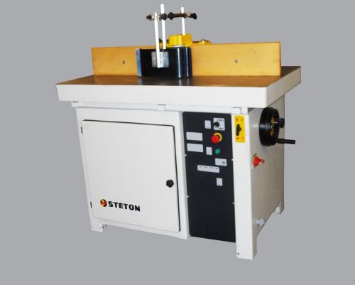 Frezarka wyposażona w dwa ustawialne wsporniki, max. rozmiar narzędzia do montażu pod stołem średnicy 300mm i wysokości 70mm, oraz silnik o mocy 7,5 Hp.