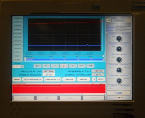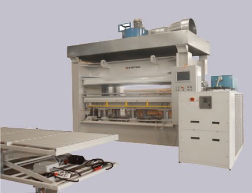 Specjalna prasa o nacisku 400 ton, z płytami dociskowymi ogrzewanymi olejem diatermicznym, wymyślona specjalnie do produkcji ekstremalnie lekkich paneli o strukturze plastra miodu, wykazujących wysoką odporność mechaniczną, przeznaczonych dla samolotowych urządzeń pokładowych. Temperatura prasowania jest zaprogramowana ze stopniowym jej wzrostem, a następnie temperatura zostaje utrzymana na stałym poziomie, po czym następuje jej stopniowe zmniejszanie. Ponadto, urządzenie jest wyposażone w specjalną instalację do kontrolowanego przebiegu chłodzenia.