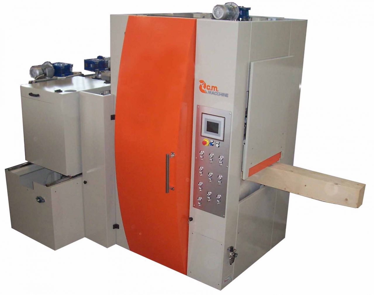 Szlifierka taśmowa SAND 600-4 do czterostronnego szlifowania oraz fazowania krawędzi belek, elementów dachów i drewnianych konstrukcji.