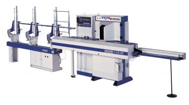 Optymalizerka elementów ram V 235 NC została zaprojektowana na bazie V 2013 NC oraz usprawniona, co czyni ją jeszcze bardziej produktywną maszyną. Piła z systemem podwyższonych standardów produkcji ram obrazowych i zdjęciowych, a także innych elementów, dla których potrzebne jest ścięcie końców pod kątem. Wyrafinowana, a przy tym prosta i praktyczna, system jest wyposażony w komputer, który sprawia, że maszyna jest bardziej wydajna i elastyczna, dla lepszej jakości gotowego wyrobu. Maszyna z podajniczym lejem samoładowczym (dostępnym w wersji poziomej i pionowej), umożliwiającym automatyczne funkcjonowanie urządzenia. Oto kluczowe cechy automatycznej optymalizerki elementów ram V 235 NC: zoptymalizowane cięcia poprzez wprowadzenie danych dotyczacych długości i ilości ciętych elementów, możliwość automatycznego wyboru odpowiedniej sekwencji cięcia, maksymalizacja wydajności pracy. Dzięki szybkiemu systemowi podajniczemu, maszyna uzyskuje wysoką produktywność. Zerowy czas konfiguracji programu, dzięki wyborowi programu z listy cięcia, jest kolejnym ważnym czynnikiem zwiększającym produktywność i wydajność optymalizerki. W zależności od kilku zmiennych, maszyna potrafi wykonać od 1000 do 1500 elementów na godzinę. Komputer ma możliwość załadowania danych poprzez dyskietkę lub poprzez bezpośrednie połączenie kablem internetowym Ethernet RS 232. Możliwe jest przerwanie procesu cięcia w dowolnym czasie i rozpoczęcie realizowania innego programu, gdyż dane z przerwanego programu, w tym liczba sztuk zostają zapisane. Łatwy interfejs użytkownika. Wbudowany komputer jest wyposażony w 8" monitor, wyświetlający wszystkie komunikaty, których w tym momencie wymaga operator w wybranym języku. Prosty w obsłudze wyświetlacz graficzny ułatwia operatorowi wybrać żądaną operację. Okno diagnostyczne, zmniejsza niepotrzebne przestoje z powodu awarii układu elektrycznego lub pneumatycznego. Dwie łatwo dostosowywane piły o średnicy 350 mm, pozwalają osiągnąć znaczną wydajność cięcia, która może być zwiększona, dzięki wyborowi opcjonalnych tarcz o średnicy 370 mm.