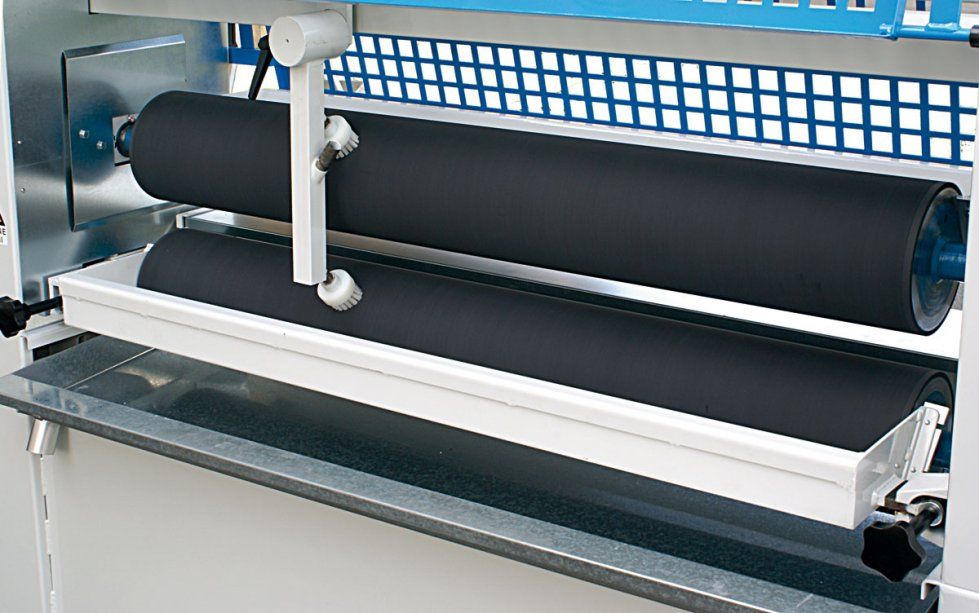 Walce powlekające o średnicy 185 mm, mogą być 3-4 razy bieżnikowane, zanim nastąpi konieczność ponownego pokrycia ich gumą, a to dzięki odpowiedniej grubości warstwy tworzywa oraz twardości zastosowanych materiałów.