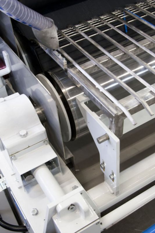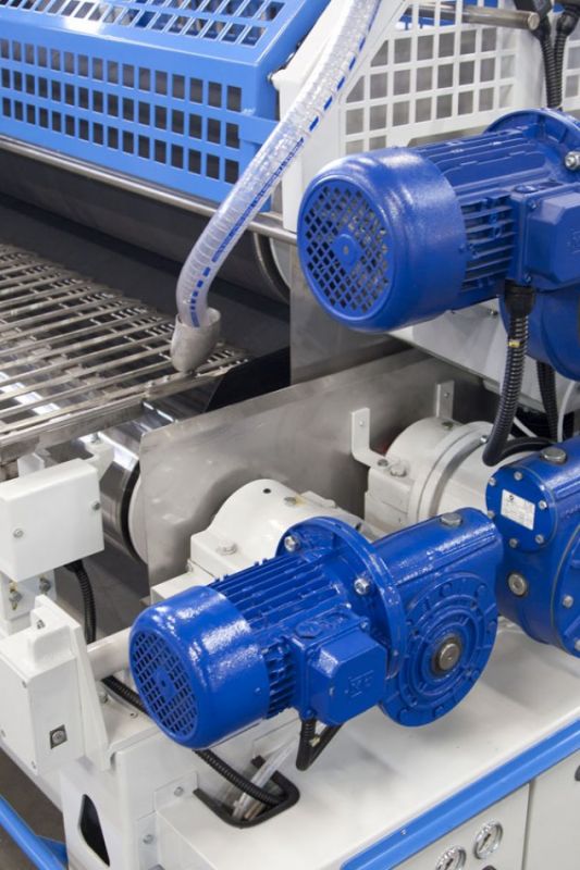 Konstrukcja wykonana z grubej stalowej blachy, z żeliwnymi podporami, walce rozprowadzające o średnicy 350 mm, łatwy dostęp do ruchomych i regulowanych części w celu konserwacji i smarowania, bezpośrednie przekazywanie napędu motoreduktorów na tą samą oś dla każdego walca, uproszczenie wielu faz pracy oraz utrzymywanie ciągłości działania maszyny - to najważniejsze cechy konstrukcyjne tego urządzenia.