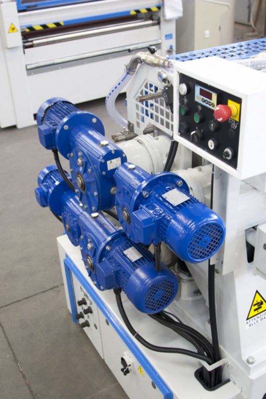 Ten model powlekarki kleju z czteroma walcami i czteroma silnikami napędzającymi, został zaprojektowany głównie dla produkcji przemysłowej płyt wielowarstwowych. Maszyna jest także doceniana za małą szerokość roboczą oraz za doskonałe rozprowadzanie kleju dla produkcji drzwi, pokrycie płyt cienkimi laminatami rozwijanymi z rolki, błyszczącymi blachami i innym tworzywami z długim cyklem procesu klejenia.