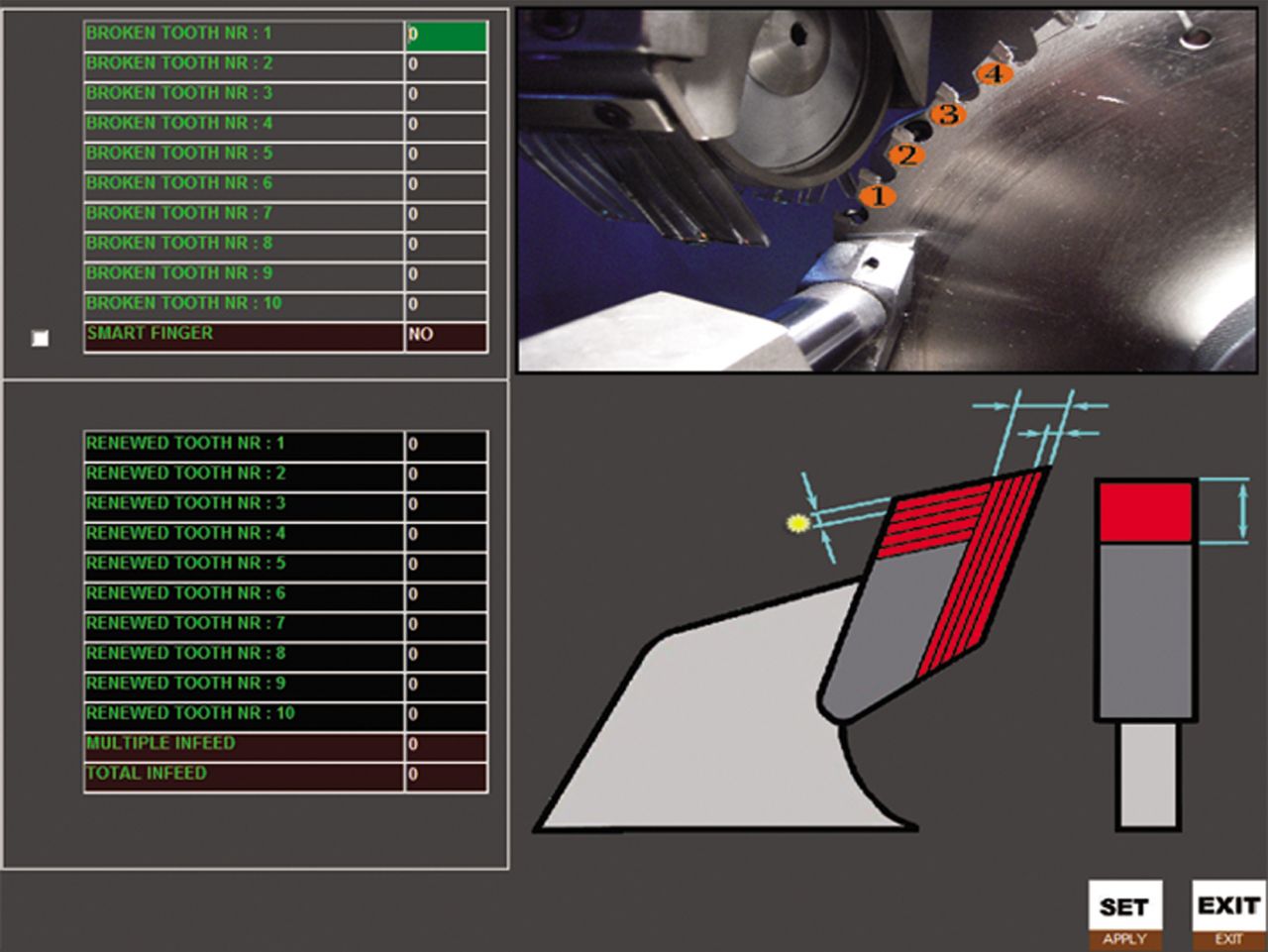 Maszyny z serii CNC posiadają 7 w pełni sterowanych numerycznie osi roboczych, system chłodzenia, sterowanie PC, wyświetlacz LCD. Obróbka grzbietu oraz czoła zębowego (przyłożenia lub natarcia) odbywa się w jednym cyklu, dla różnych kształtów zębowych. Urządzanie posiada unikalny system szybkiego przemieszczania tarczy szlifierskiej oraz możliwość dowolnego programowania profilu/kształtu zębowego ostrza.