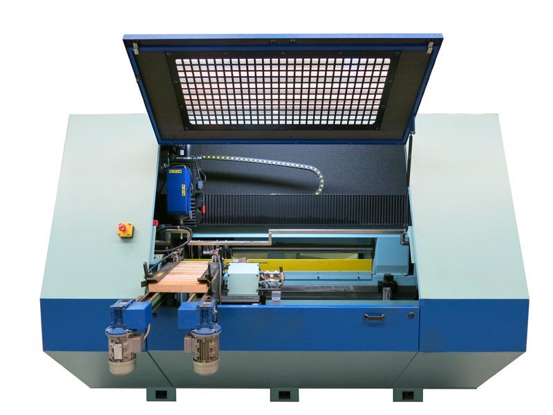 Wzorcarka CNC dla operacji toczenia i frezowania prostych oraz stożkowych elementów o długości maksymalnej do 1400 mm o przekroju okrągłym, owalnym lub nieregularnym; urządzenie to współpracuje z systemem kopiowania CNC, do określenia sekcji, które mają być wykonywane oraz wszystkich pozostałych parametrów, dla zwiększenia dokładności oraz jakości obróbki; możliwa jest praca na bazie 3 do 5 osi CNC, dla wykonywania kilku różnych parametrycznie sekcji na jednym obrabianym elemencie; w urządzeniu zamontowana jest głowica frezująca oraz specjalne noże zgodne z kształtem, który ma zostać uzyskany na obrabianym przedmiocie.