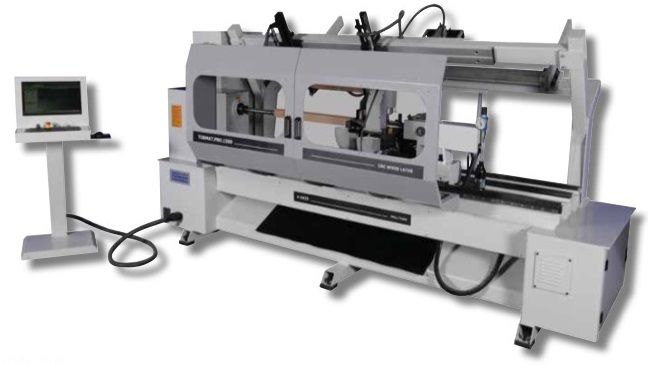 Tokarka CNC mod. TORMAT.PRO z 4 osiami sterowanymi numerycznie CNC oraz 2 nożami kopiującymi i 2 narzędziami frezującymi do wykonywania wszelakich operacji tokarskich, a także operacji frezowania na powierzchniach wykonanych elementów. Okular pozwala na obrabianie długich i wąskich elementów. Konstrukcja z 2 nożami zapewnia większa zdolność operacji toczenia. Maszyna wyposażona jest w hydrauliczny siłownik dla lepszego mocowania elementu obrabianego pomiędzy zaciskami. Pionowe i poziome narzędzia frezarskie mogą wykonać podłużne, jak i skrętne rowki na przetoczonych powierzchniach elementu.