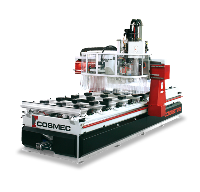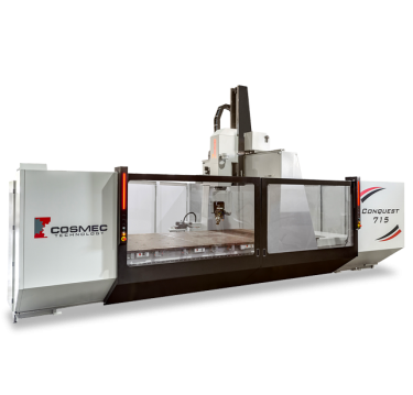 Centrum obróbcze CONQUEST to doskonały kompromis między ceną, a jakością. Zaprojektowany z ruchomym mostkiem (suwnicą) i stałym stołem, maszyna pozwala na obróbkę grubych paneli z największą dokładnością, dzięki zastosowaniu zamkniętej ramy. Wysoka prędkość wszystkich osi znacznie skraca czasy cyklu roboczego.