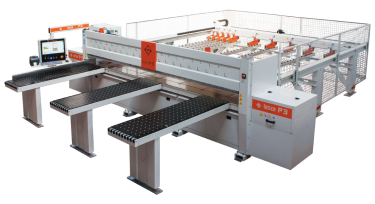 Piła obsługiwana jest przez 3 stoły (1 stały, 2 ruchome), 8 podajników pneumatycznych i systemy, które automatycznie odczytują wysokość płyty.